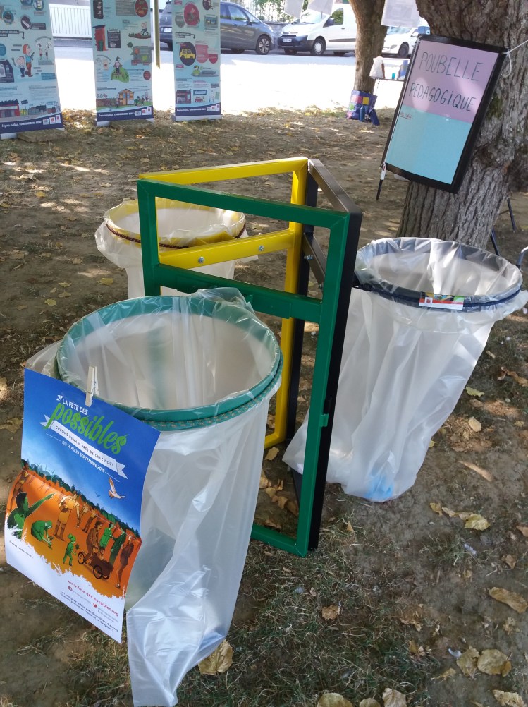 Nous mettons notre poubelle de tri à votre disposition pour vos fêtes, foires à tout, etc…, pour pouvoir trier le verre/matière compostable du recyclage des ordures ménagères.